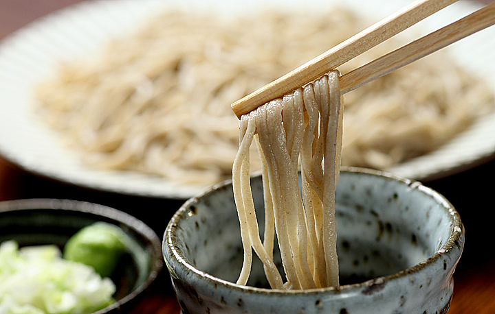 そうめん系の二八蕎麦 (小麦粉入り) と違い蕎麦粉100%の打ち粉 (花粉) も