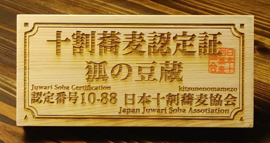 | 日本十割蕎麦協会認定店 |